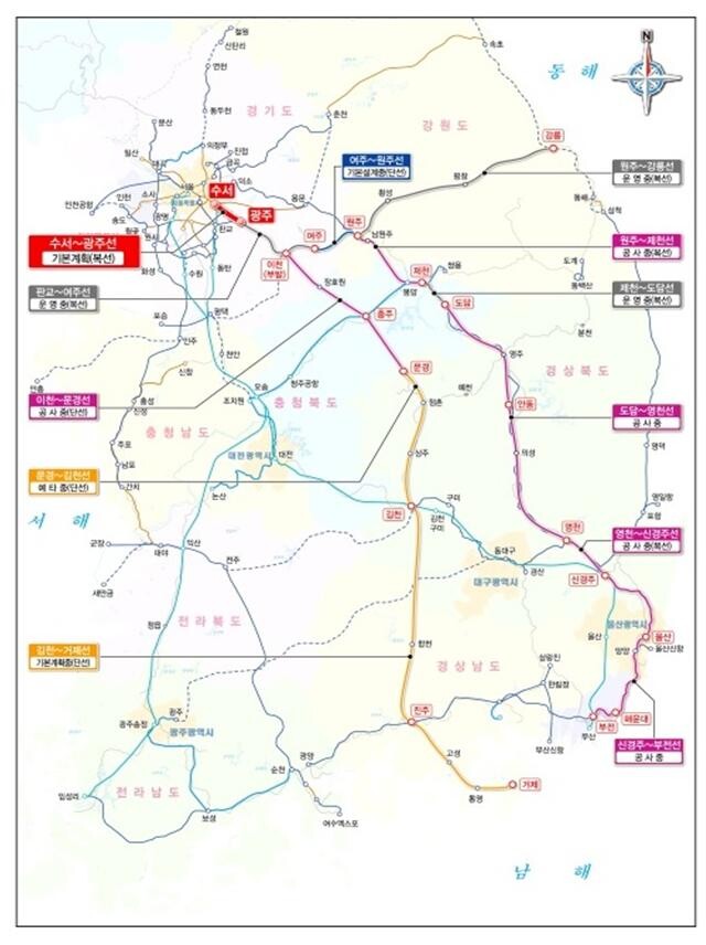 올 4월에 실시한 제4차 국가철도망구축계획 공청회에서 7대추진방향중 철도운영 효율성 제고를 위한 사업으로 중부내륙선(문경~김천)과 남부내륙철도(김천~거제) 연계사업이 발표되면서 향후 서울~거제간 이동시간이 4시간 30분에서 2시간 40분으로 단축될 것으로 예상된다.