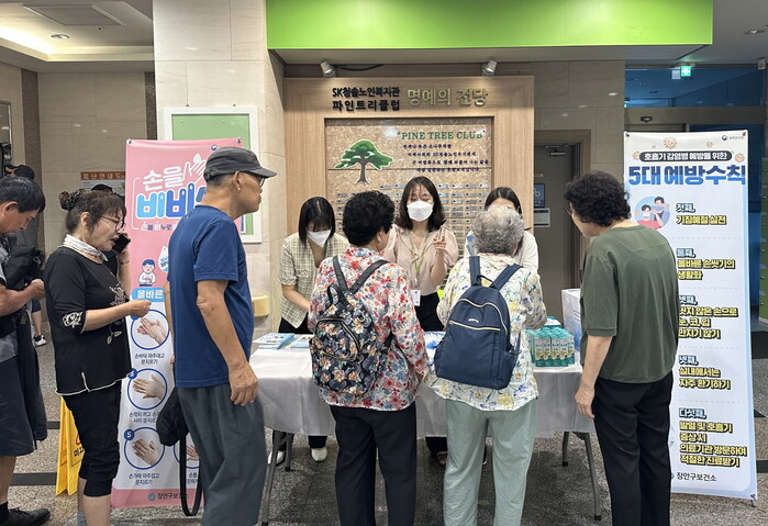 수원 장안구보건소가 12일 SK청솔·밤밭노인복지관을 찾아가 어르신들을 대상으로 호흡기 감염병 예방 캠페인을 열었다.