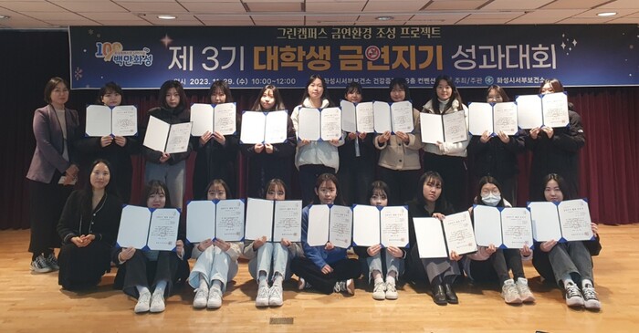화성시(시장 정명근)가 29일 화성시서부보건소에서 제3기 대학생 금연지기 성과대회를 개최했다.