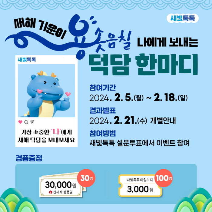 수원시가 모바일 시정참여 플랫폼 ‘새빛톡톡’에서 2월 5~18일 ‘설맞이 나에게 보내는 덕담’ 이벤트를 연다.