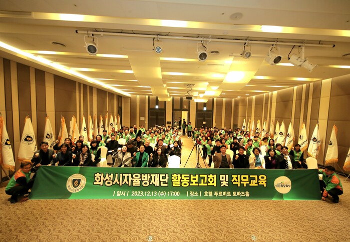 화성시의회가 12월 13일 화성시 안녕동에 위치한 푸르미르 호텔에서 열린 ‘2023년 화성시지역자율방재단 직무교육 및 표창 수여식’에 참석했다.