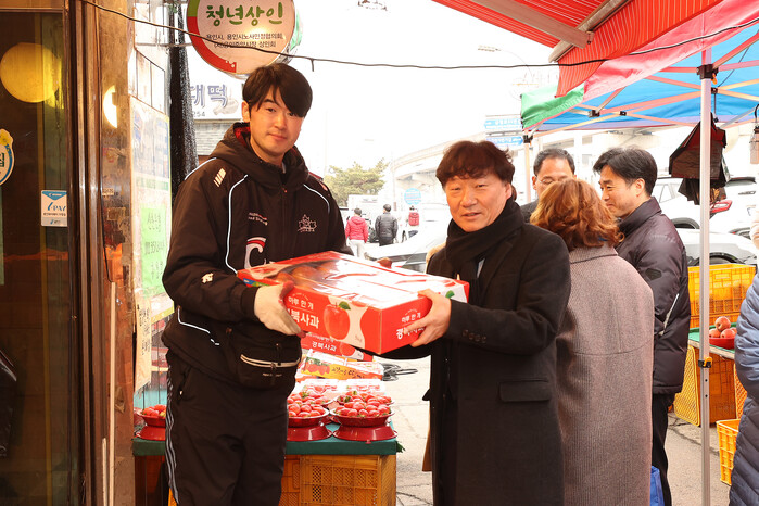 경기도의회 교섭단체 더불어민주당(대표의원 남종섭, 용인3)이 7일(수) 설 명절을 앞두고 용인시 김량장동에 위치한 용인중앙시장을 방문해 설 인사를 전하고, 상인들의 목소리를 듣는 시간을 가졌다.
