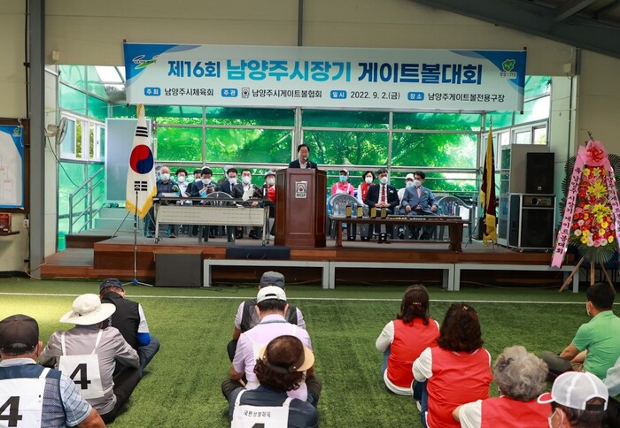 주광덕 남양주시장은 2일 남양주체육문화센터 게이트볼장에서 열린 ‘제16회 남양주시장기 게이트볼대회’ 개회식에 참석해 게이트볼 동호인들과 소통하는 시간을 가졌다.