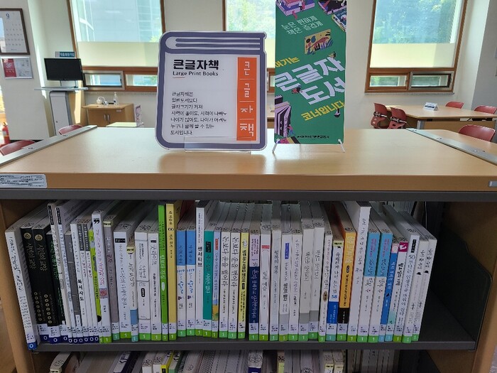 큰 글자 도서 코너에는 ▲시 ▲소설 ▲에세이 ▲자기계발서 ▲역사 ▲심리학 ▲외국어 등 도서 270여 권이 비치돼 있다.