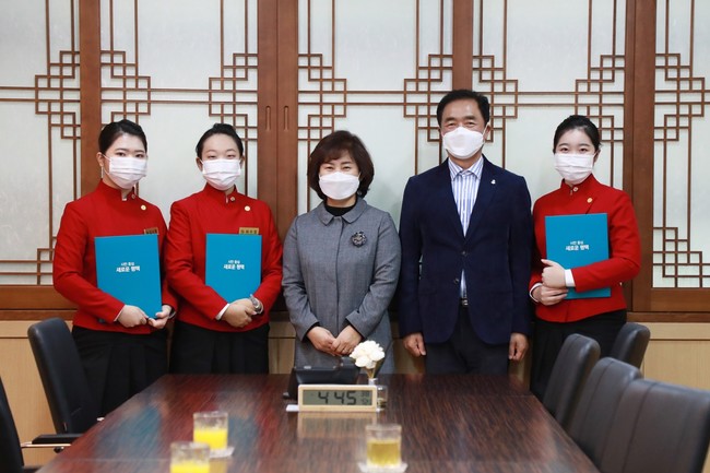 [로컬라이프] 평택시(시장 정장선)는 지난 25일 시청 대외협력실에서 한국관광고등학교(교장 서영미) 학생 3명에게 ‘평택시 청소년 홍보대사’ 위촉장을 수여했다고 밝혔다.