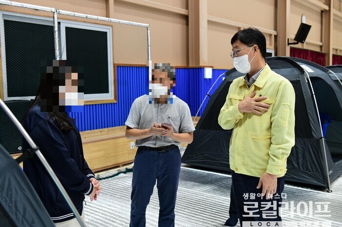 [안산=로컬라이프] 송준형 기자 = 이민근 안산시장이 수해 이재민 대피소를 찾아 위로했다.