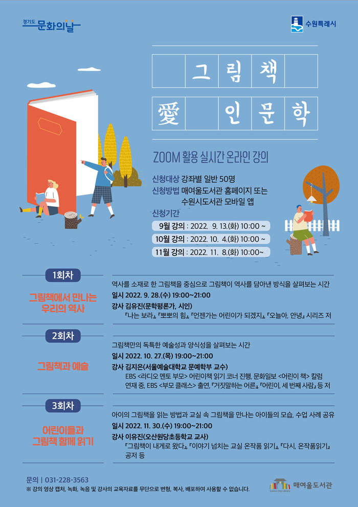 수원시가 9월부터 11월까지 경기도 문화의 날 ‘그림책 愛(애) 인문학’을 개최한다.