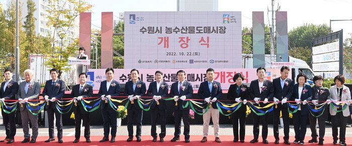 수원시 농수산물도매시장이 5년여 만에 시설현대화사업 공사를 완료하고, 22일 개장 행사를 열었다.