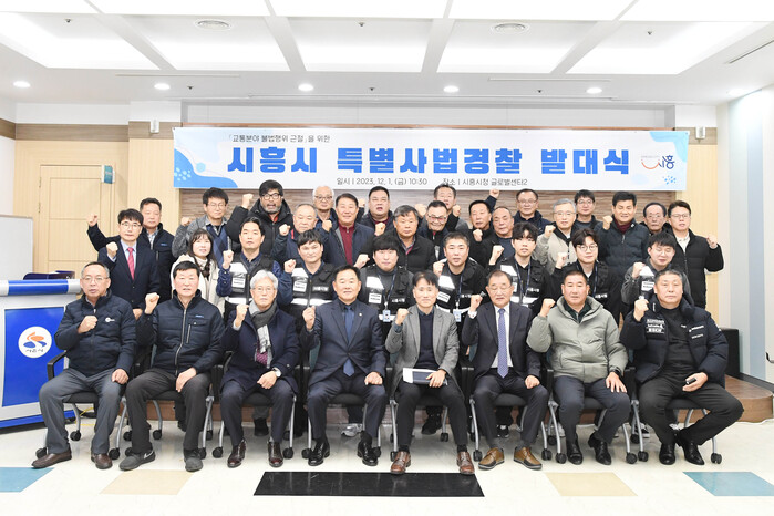 시흥시(시장 임병택)가 지난 12월 1일 시청 글로벌센터에서 관내 곳곳에서 발생하는 교통 분야 불법행위를 방지하기 위해 7명의 특별사법경찰을 구성하고 발대식을 열었다.