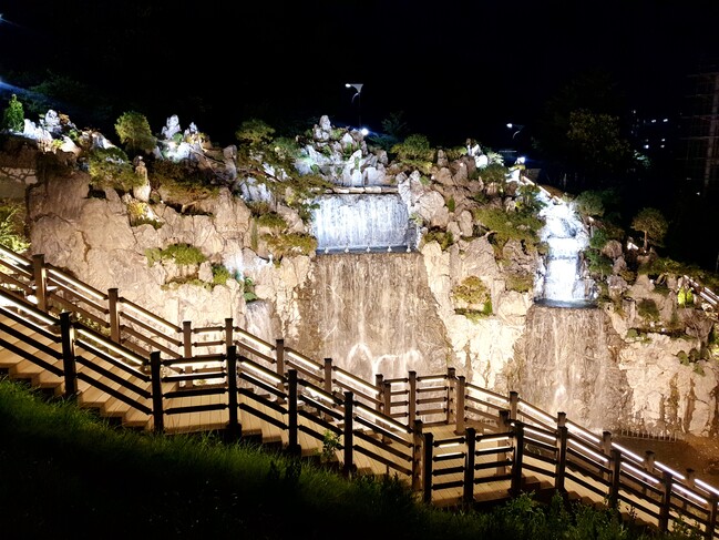 이천시(시장 엄태준)는 설봉공원에 19억 원의 예산을 투입하여 인공폭포를 조성하였다.