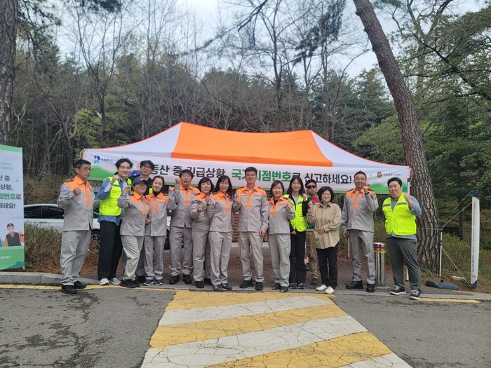 수원시와 수원남부소방서와 함께 19일 칠보산 인근 용화사 입구에서 국가지점번호판 홍보 캠페인을 펼쳤다.