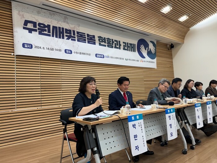 민소영 경기대 사회복지학과 교수, 황재경 우만종합사회복지관 관장, 박란자 수원시 복지여성국장, 정영모 수원특례시의회 복지안전위원장이 지정 토론을 했다.