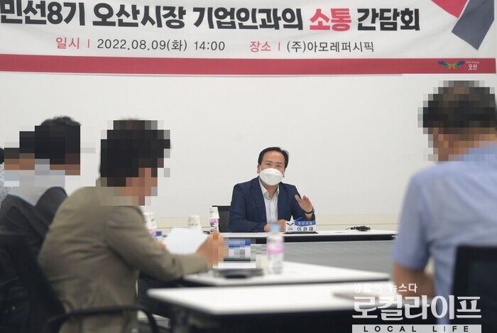 | ▲ 이권재 오산시장이 관내 기업을 찾아 간담회를 갖고 있다. (사진출처=이권재 페이스북) |