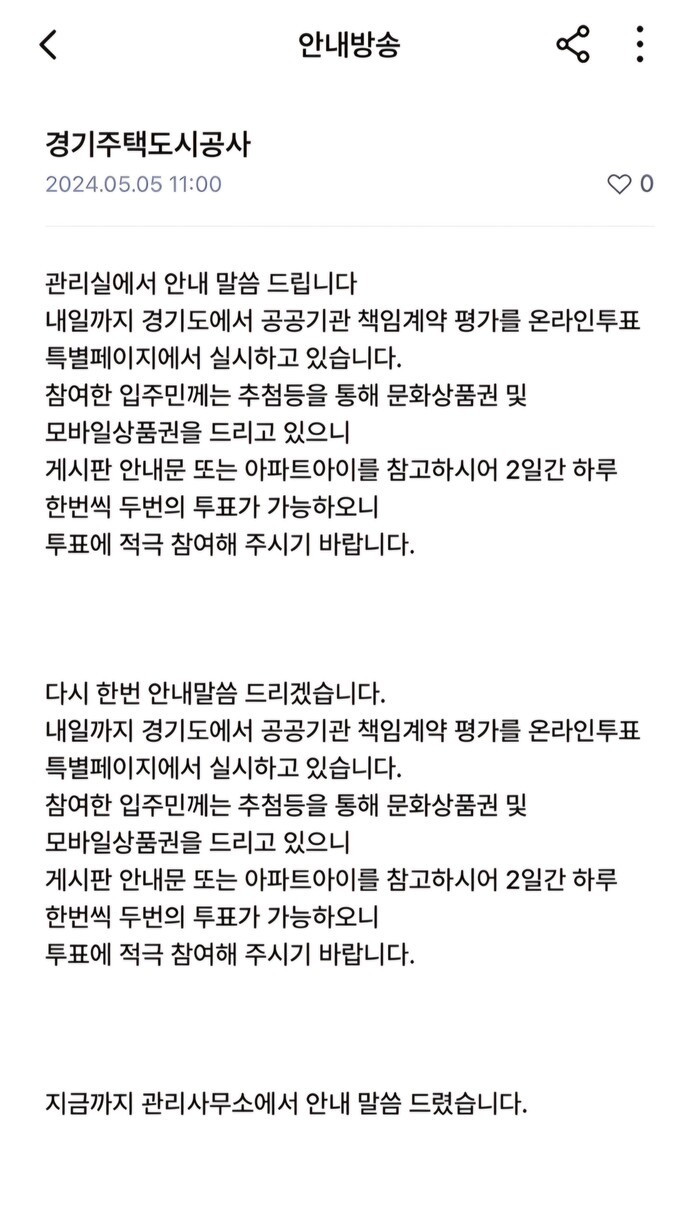 1위 기록한 경기주택도시공사(GH) 34차례 직원 대상 투표 독촉 문자 발송