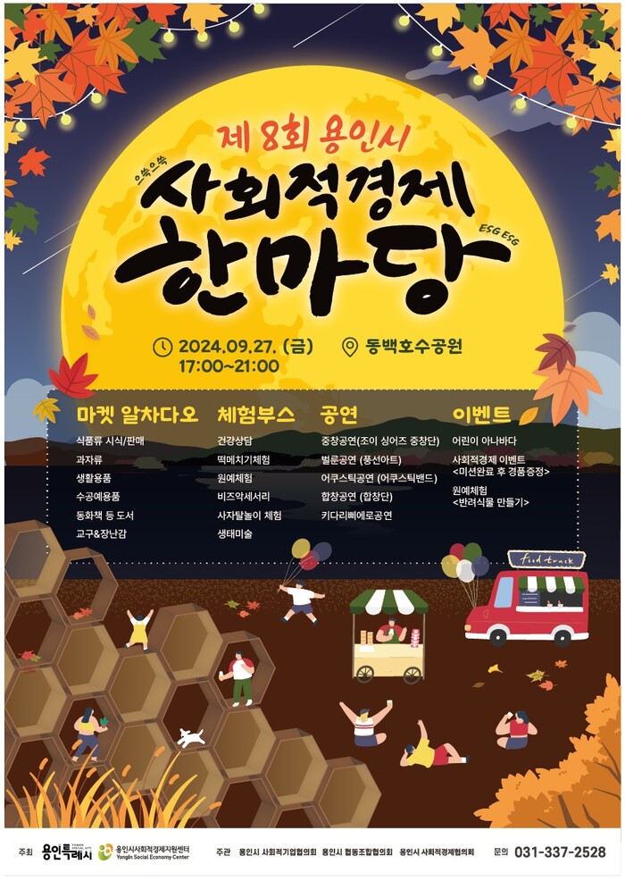 용인특례시(시장 이상일)는 오는 27일 기흥구 중동 동백호수공원 광장에서 지역의 사회적경제기업 31곳의 제품을 알리는 ‘사회적경제 한마당’을 개최한다고 22일 밝혔다.