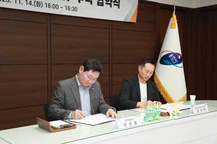 이와 관련해 용인특례시와 ㈜카카오스페이스는 지난 14일 오후 시청의 시장접견실에서 이상일 시장과 임성욱 ㈜카카오스페이스 대표이사 등이 참석한 가운데 ‘고기근린공원 조성사업 관련 사회공헌 공원 조성 위수탁 협약’을 맺었다.
