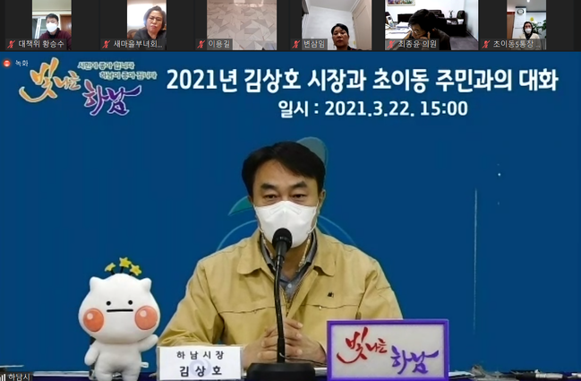 하남시(시장 김상호)는 22일 김상호 시장과 초이동 주민들이 줌(ZOOM)을 통해 9일차 ‘2021년 주민과의 대화’를 함께했다고 밝혔다.