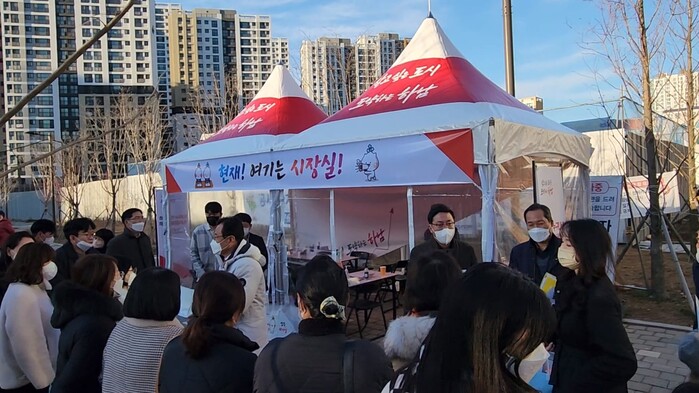 [로컬라이프] 송준형 기자 = 이현재 하남시장은 2일, 감일지역 보호수 공원에서 이동시장실을 진행했다.
