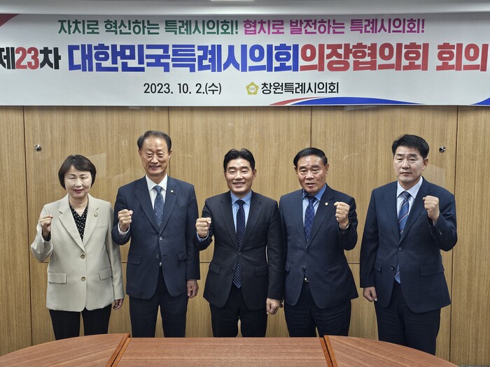 이날 정례회의는 배정수 화성시의회 의장, 손태화 창원특례시의회 의장, 김운남 고양특례시의회 의장, 이재식 수원특례시의회 의장, 유진선 용인특례시의회 의장이 참석했다.