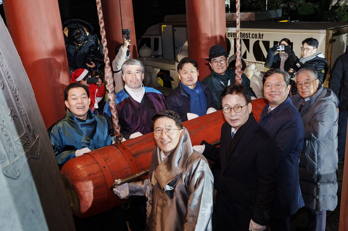 사진/이재준 시장이 새해 타종을 하고 있다.(사진제공=수원시)