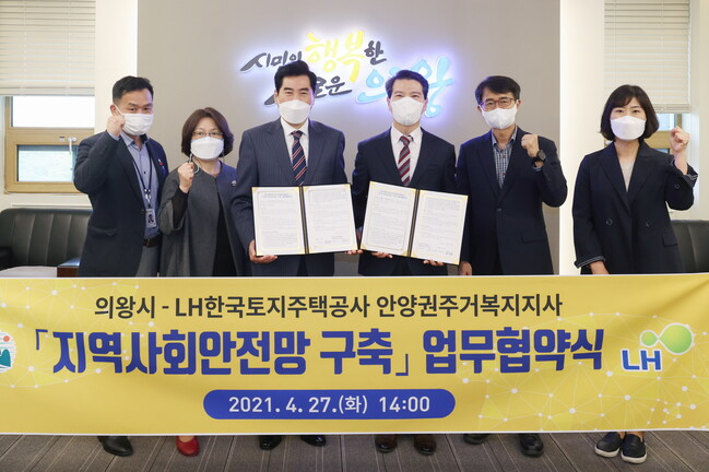 의왕시(시장 김상돈)는 27일 LH한국토지주택공사 안양권 주거복지지사와 함께 임대아파트 입주민의 삶의 질 향상을 위한 업무협약을 체결했다.
