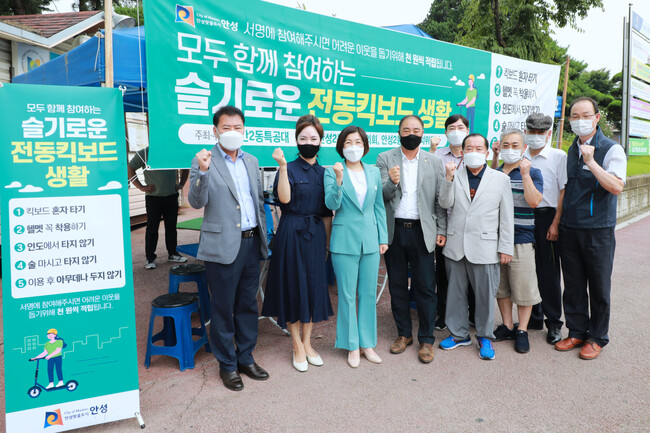 김보라 시장은 이날 자신의 페이스북을 통해 그래서 시민이 직접 나서서 안전한 킥보드 이용을 홍보하는 ‘슬기로운 전동킥보드 생활’ 캠페인에 참여했다며, 안성2동 ‘순간2동특공대’가 직접 한경대학교 앞에서 ‘혼자 타기’, ‘헬멧 착용’, 음주운전 하지 않기 등 이용 수칙을 준수하고 주변에 홍보하기를 약속하는 서명을 진행했다고 밝혔다.