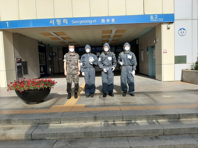 시는 20일과 23일 양일 간 공군작전사령부 근무지원단 장병 30여명이 투입돼 평택역, 서정리역 등 관내 6개 역의 방역활동이 이뤄졌다고 23일 밝혔다.