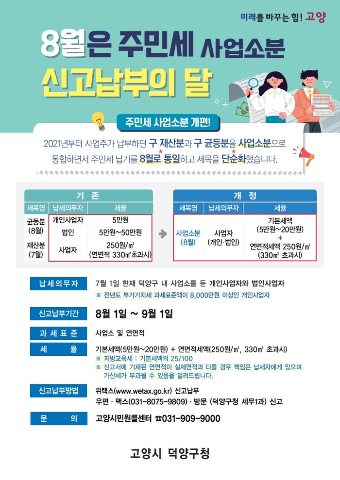 고양특례시 덕양구는 8월 정기분 주민세(개인분) 194,748건에 대한 고지서를 일제 발송했다고 11일 밝혔다.