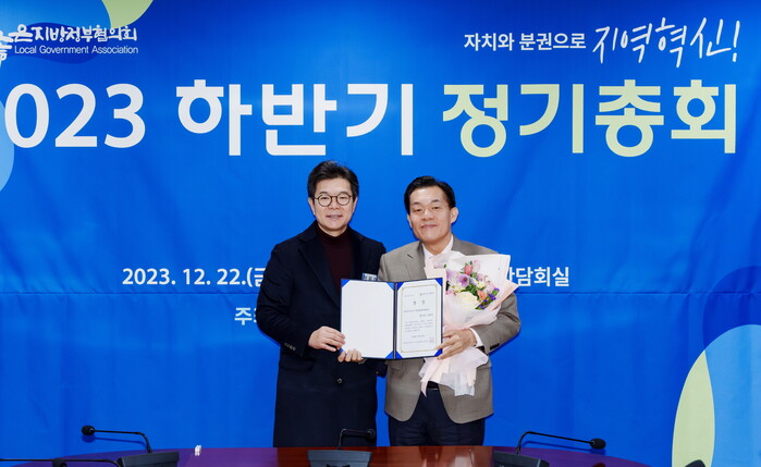 이재준 수원특례시장은 22일 국회의사당의원회에서 열린 ‘2023 참좋은 지방정부협의회 하반기 정기총회’ 중 상장을 받았다.