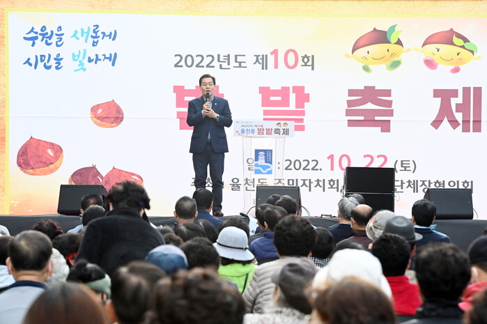 수원시 율천동을 대표하는 마을축제인 ‘제10회 율천동 밤밭축제’가 22일 율전동 밤나무동산 일원에서 열렸다.