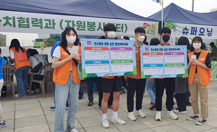 이날 안녕캠페인은 이충레포츠공원 내 행사장 홍보 부스에서 성인 자원봉사자 13명과 함께 대면으로 진행됐으며, 탄소중립 생활 실천 방법을 위한 에너지절약, 소비절약, 자원순환, 온실가스 배출 최소화 등 가정에서 할 수 있는 생활 실천 방법을 보드판을 통해 시민 참여를 유도해 환경 살리기에 동참하고 생활 습관을 변화하는 계기를 제공했다.