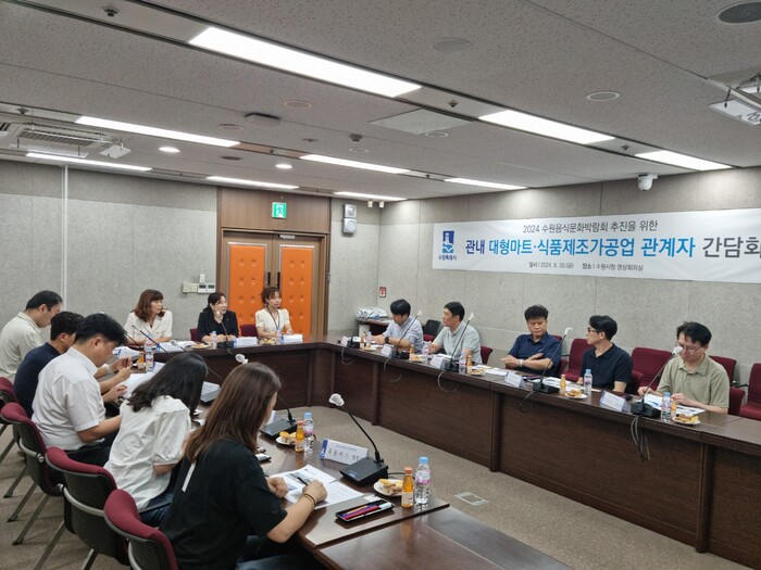수원시(시장 이재준)가 8월 30일 시청 영상회의실에서 관내 대형마트·식품제조가공업 관계자와 간담회를 열고, ‘2024 음식문화박람회’의 운영 방향을 논의했다.
