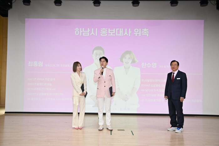 이현재 시장은 “하남시는 K컬처 허브도시로 도약하기 위해 미사아일랜드에 K-스타월드 조성사업을 추진하며, 글로벌 문화의 중심지로 자리잡을 계획”이라면서 “이번에 홍보대사로 위촉된 최홍림씨와 한수영씨는 하남시의 매력을 잘 전달할 적임자이며, 두 분의 영향력과 열정이 하남시 문화예술 발전에 큰 역할을 하길 기대한다”라고 힘주어 말했다.
