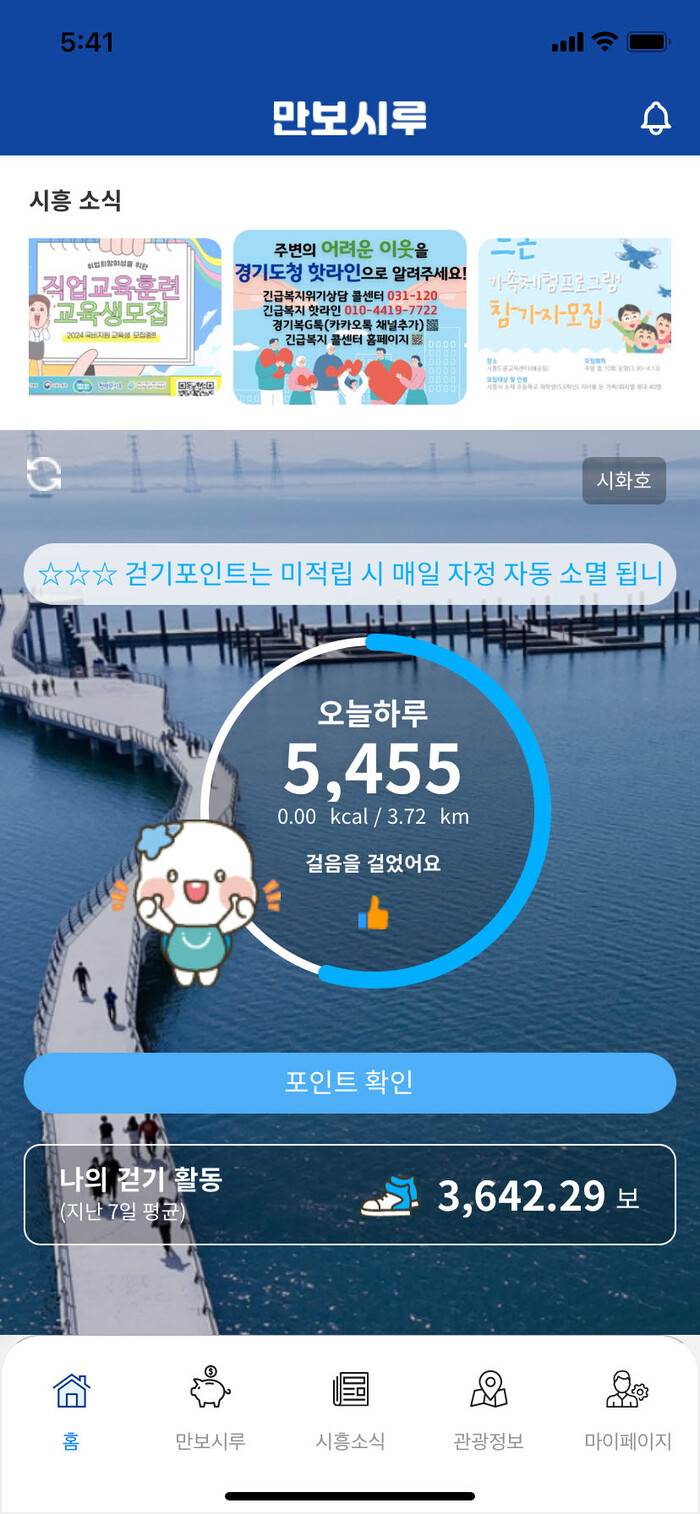 이번 기능 개선으로 매일 3만여 명이 접속하는 만보시루 앱 내에 시흥시 각종 행사 및 알림 게시판도 강화해 효과적인 시정 홍보 효과가 기대된다.