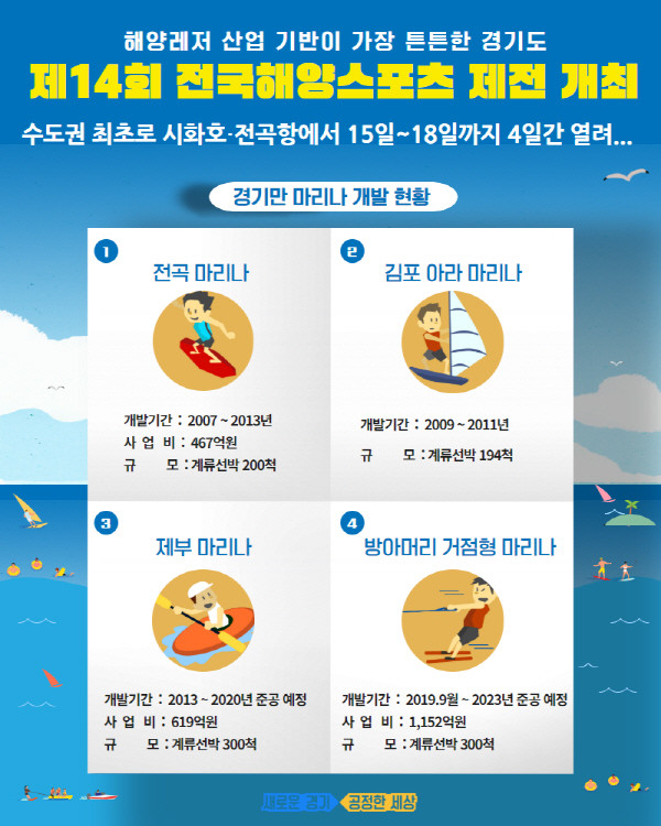 [경기=로컬라이프] 임현상 기자 = ‘제14회 전국해양스포츠 제전’이 이달 15일부터 18일까지 나흘간 경기도 시흥·안산 시화호 및 화성 전곡항 일원에서 개최된다.