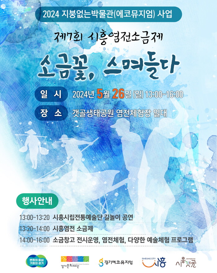 [로컬라이프] 시흥시(시장 임병택)는 지붕 없는 박물관(에코뮤지엄) 사업의 하나로 오는 5월 26일 오후 1시부터 시흥갯골생태공원 내 염전 체험장 일대에서 ‘2024 제7회 시흥염전 소금제-소금꽃, 스며들다!’를 개최한다.