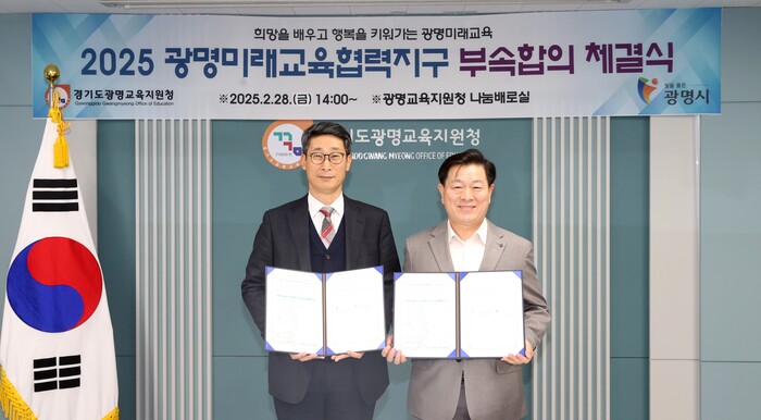 시는 28일 광명교육지원청 나눔배로실에서 광명교육지원청(교육장 이용현)과 ‘2025 광명미래교육협력지구 부속합의’를 체결하고 2025년 지역특화 교육 세부 사업을 확정했다.