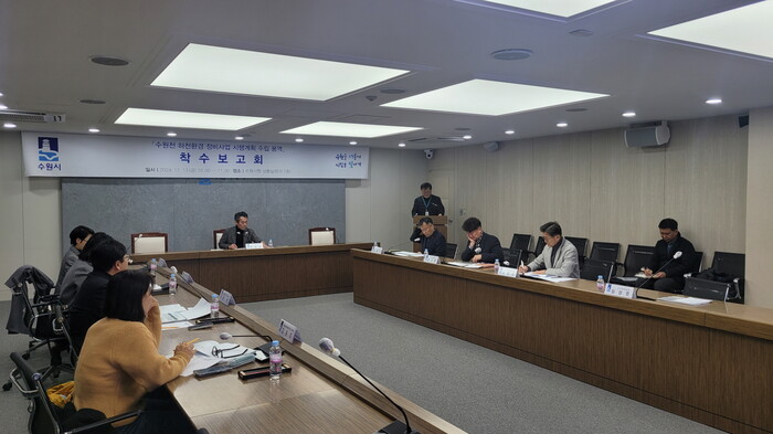 사진/수원시가 수원천 하천환경 정비사업 용역 착수보고회를 열고 있다.(사진제공=수원시)