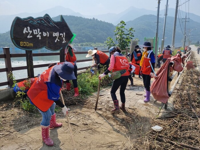 이날 봉사자들은 큰비가 휩쓸고 간 칠성면 외사리 일대 하천 주변에서 쓰레기와 부유물을 수거하고 주택과 상가의 토사와 가재도구를 정리하는 등 수해복구에 동참했다.
