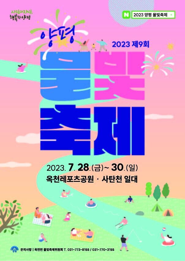 [로컬라이프] 옥천면물축제추진위원회(위원장 허철호)가 추진하는 ‘2023 제9회 양평물빛축제’가 오는 28일부터 30일까지 3일간의 일정으로 옥천레포츠공원과 사탄천 일원에서 개최된다.
