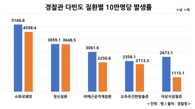 [사진설명] 경찰관 다빈도 질환별 10만명당 발생률