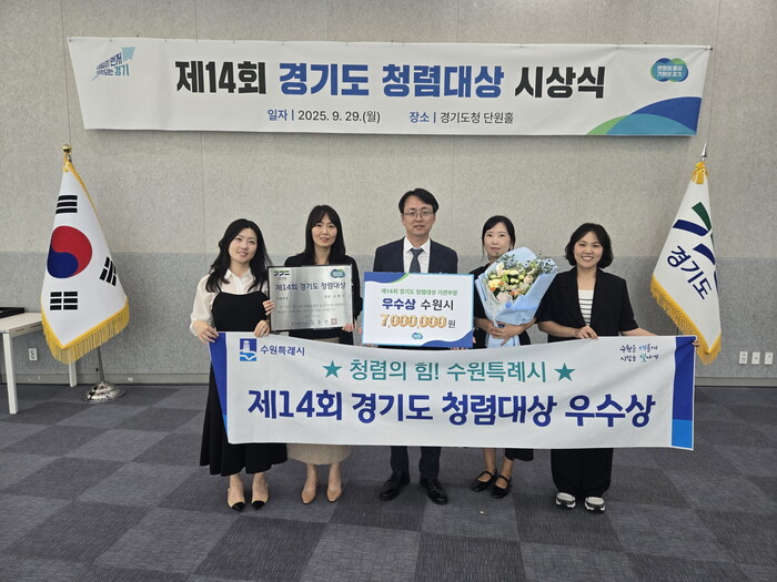 수원특례시(시장 이재준)가 제14회 경기도 청렴대상에서 우수상으로 선정됐다. 시상식은 29일 경기도청 단원홀에서 열렸다.