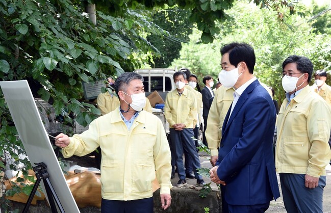 안병용 의정부시장은 8월 19일 오는 21일부터 시작되는 집중호우에 대비하여 산사태 발생 우려가 있는 지역(신곡동 산 29-2)에 대하여 긴급 현장점검을 실시했다.