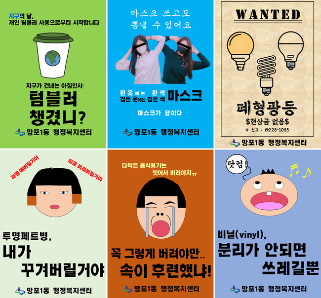 수원시 망포1동이 쓰레기 분리배출, 마스크 착용 등 주요 시책을 알리는 홍보물을 이른바 ‘B급 감성’으로 만들어 SNS에 게시해 눈길을 끌고 있다.