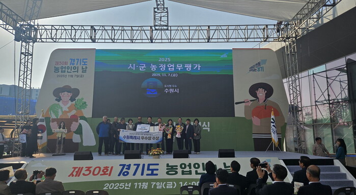 수원특례시(시장 이재준)가 경기도 시군 농정업무평가에서 우수상을 받았다. 시상식은 7일 국립농업박물관 광장에서 열렸다.