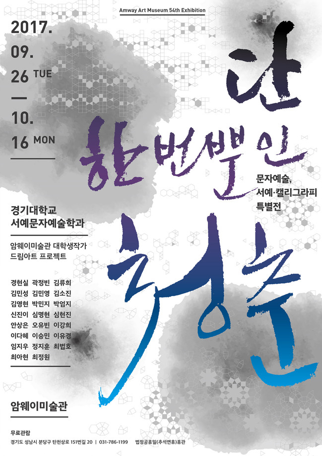 고객 대상 행사 또한 마련됐다. 본격적 추석 연휴를 앞둔 29일(금)부터는 암웨이브랜드센터에서 당일 10만원 이상 구매 고객을 대상으로 선착순 100명에게 전시 참여 작가가 ‘우리집 가훈’을 무료로 써준다. 전시 기간 동안 별도의 현장 퀴즈 이벤트 또한 진행되며, 26일 오프닝 행사에는 경기대학교 밴드동아리의 축하공연도 예정되어 있다.