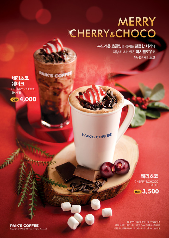 더본코리아 빽다방 관계자는 “크리스마스 시즌을 맞아 색다른 맛과 비주얼의 ‘디저트형 음료’를 찾는 고객들이 늘어남에 따라 고급 초콜릿과 체리의 조화를 느낄 수 있는 시즌 한정 메뉴를 선보이게 되었다”면서, “크리스마스 분위기가 물씬 풍기는 빽다방 스타일의 체리초코 음료를 마시며 사랑하는 이들과 행복한 크리스마스와 연말연시를 보내시길 바란다”고 말했다.