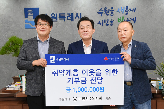 수원시 수의사회가 “경제적으로 어려움을 겪는 취약계층 시민 지원에 사용해 달라”며 수원시에 100만 원을 기탁했다.
