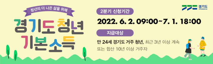 청년기본소득 2분기 대상자(1997.4.2. ~ 1998.4.1.일생)에 대한 신청접수가 6월 2일부터 7월 1일까지 진행된다.