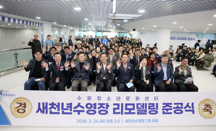 수원특례시의회(의장 이재식)는 24일 청소년문화센터 내 새천년수영장에서 열린 「새천년수영장 리모델링 공사 준공식」에 참석해 준공을 축하했다.